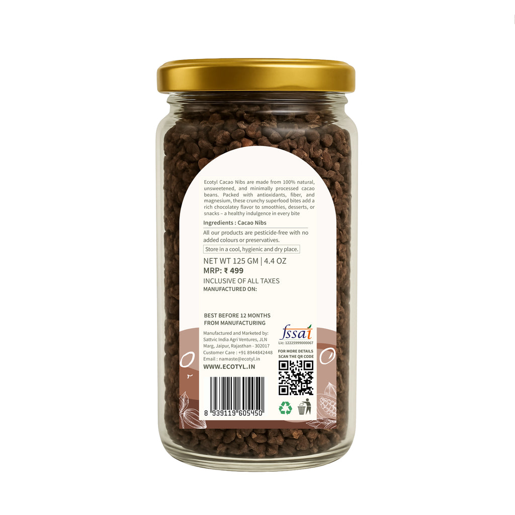 At Ecotyl, the purity and authenticity of the products are two important pillars of our business. Cacao Nibs are a rich source of antioxidants and nutrients that support overall wellness. They do not contain any harmful chemicals or additives, only the goodness of pure cacao beans.